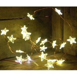 Primitives by Kathy , These beautiful fairy light strands have 20 tiny LEDs each enclosed by a clear 5 pointed star. This battery operated strand is an ultra thin diameter copper colored wire. Use them for interior decor, holiday decorations, costumes, weddings, parties, Christmas etc. Runs for dozens of hours on a set of batteries.