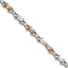JewelryWeb , Sterling Silver 7.5inch Champagne Cubic Zirconia Bracelet - Lobster Claw - in Sterling Silver - Product Attributes: - Fancy Lobster Closure - Polished - JewelryWeb Style: QTB114463SS - FREE gift-ready jewelry box