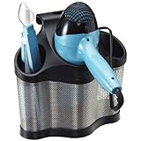 Container Store , An uncluttered bathroom cabinet or vanity is a beautiful thing, which is why our Stainless Steel Style Station is so handy. It has three compartments that can hold a hair dryer, curling iron, flat iron, hairbrushes or other tools - even when they've just been used and are still warm. Plus, the back features two additional compartments and three notches to keep cords neat. Place it in a cabinet or on a counter, mount it on a wall or hang it from a towel bar.||Interior base of heat-resistant silicon allows hot styling tools to be put away immediately | Stainless steel mesh allows air circulation to help styling tools cool ...