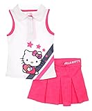Hello Kitty , She'll love this cool and comfy outfit from Hello Kitty! The sleeveless top has a polo collar with hidden button placket, and a Hello Kitty applique with stripes, stars, and a bejeweled heart. The matching skirt features an elastic waistband with tie and embroidered logo, box pleats, and a logo print. Both items are made of soft and stretchy jersey. 60% Cotton, 36% Polyester, 4% Spandex Machine Wash Cold, Inside Out Made in China ...
