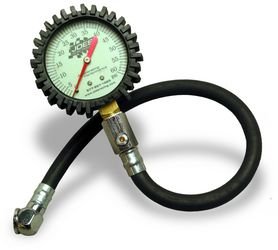 Joes Racing Products 32306, 2-1/4" Glow in the dark dial face. Air pressure release button. Internal gauge damper. 14" flexible hose.