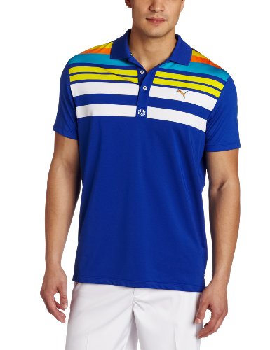 Puma Men's Engineered, No one said golf is easy. Not even the pros. While we can’t make all of this sport’s pressures go away, we can help reduce your sweating. This polo’s yarn is moisture wicking: it draws sweat away from the skin and helps quickly evaporate it. Additional design elements include a three button placket, engineered jacquard stripes, and side vents.