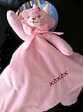 , Pink Kitty Cat XOXOX Security Blanket Honey Bunny Cuddly Pals. Honey Bunny Cuddly Pals. Pink kitty cat security blanket. Lovey is embroidered with XOXOX. Pink grosgrain neck ribbon. 18" X 18" ...