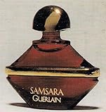 Parfums Guerlain, Paris , In Sanskrit, name means "ETERNAL RETURN." Samsara was created when Jean-Paul Guerlain encountered a woman so serene and sensual, so confident and femine, he wanted to capture her aura in a fragrance. The red bottle design is based on a Tibetan figure in the Guimet Museum in Paris. Yellow bottle cap represents closed eyes. Commonly, many Buddhist statues can be found with the eyes closed. (Read More)