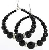Mevoi , Lovely graduate black luster Simulated pearl hoop earrings adorned with two crystal rings between a 12mm pearl at center followed up with two (10mm),four(8mm),six(6mm) and ten(4mm) on each (right and left)side ear for pierce ear.Earrings loop measures 2 3/4" drop dangling. (Read More)